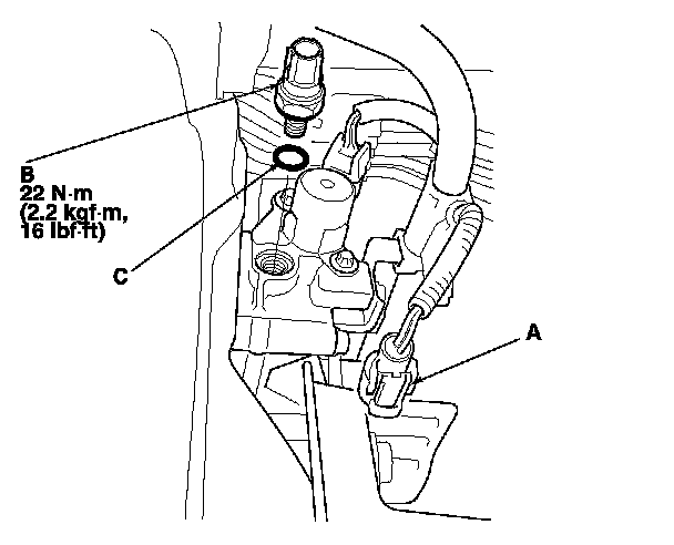 3. Install the parts in the reverse order of removal with a new O-ring (C).