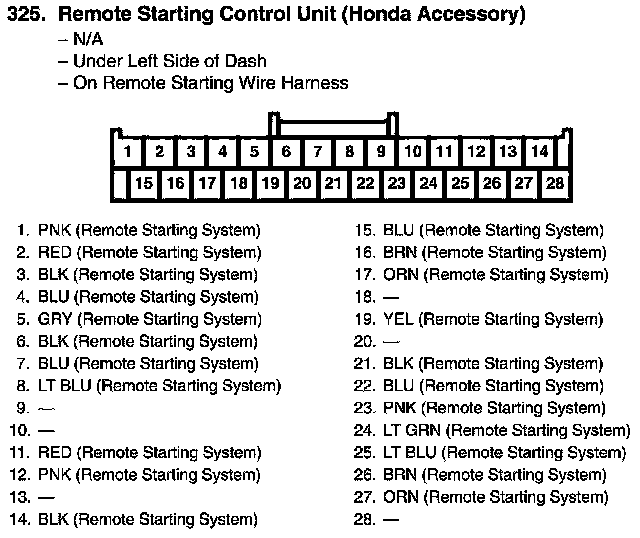 Remote Starting Control Unit Connector View (Honda Accessory: A/T)