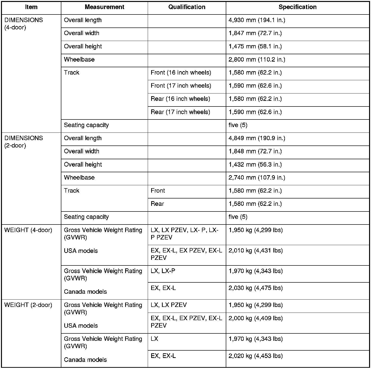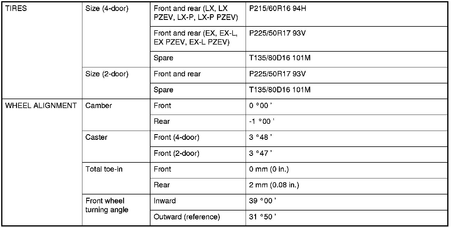 *: Except LX, LX PZEV