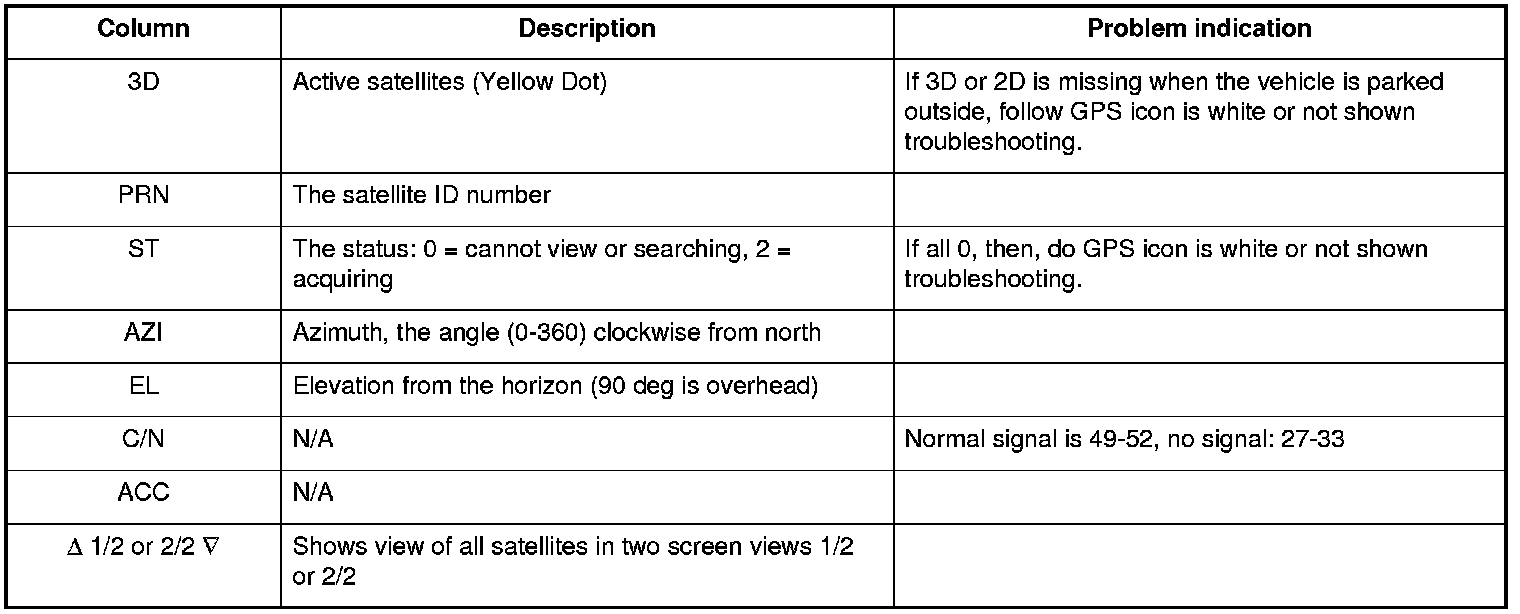NOTE: When you use this screen for troubleshooting, park the vehicle outside, away from buildings, tall trees, and high-tension wires for at least 10 minutes with the engine running.