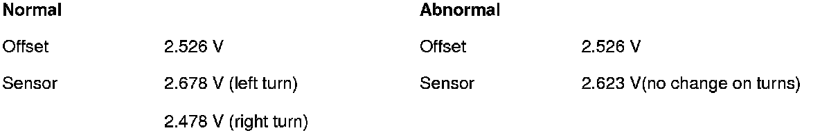 - A sensor output voltage LOWER than the Offset voltage indicates that the vehicle is turning to the right.