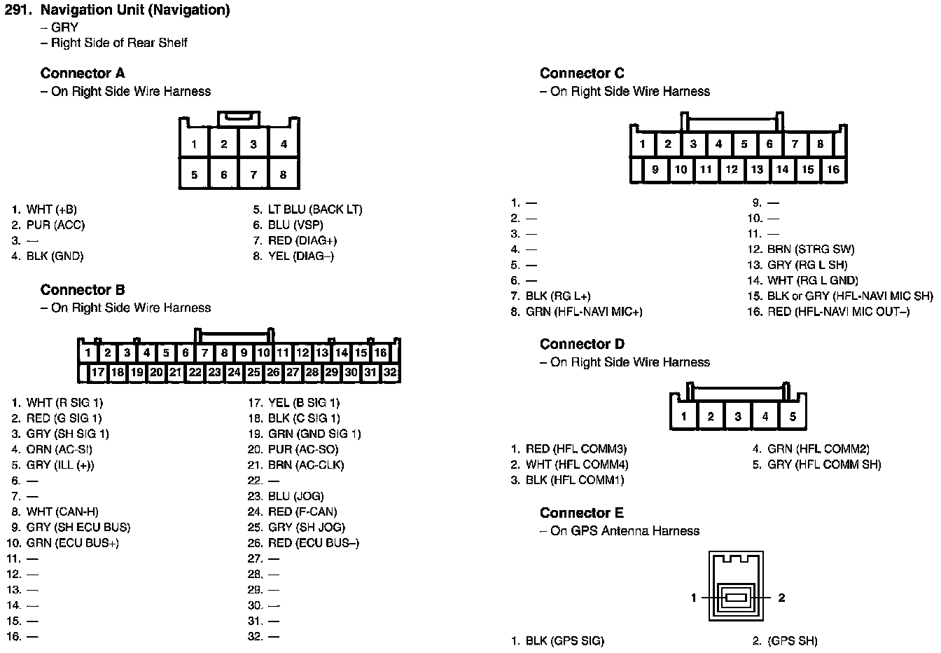 View 291 Navigation Unit Connector View (Navigation)