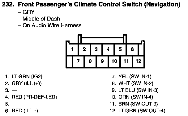 Front Passenger's Climate Control Switch Connector View (Navigation)