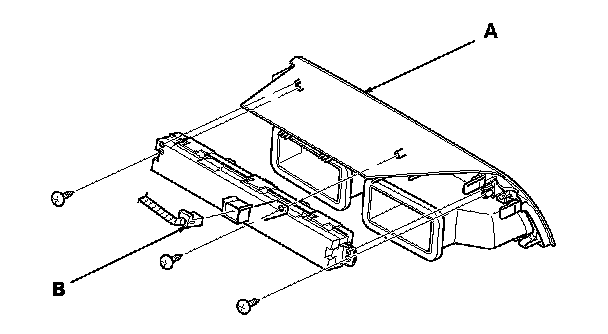 3. Disconnect the connector (B), and remove the audio-HVAC subdisplay unit.