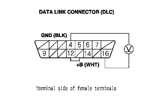 24. Measure the voltage between DLC terminal No. 16 and body ground.