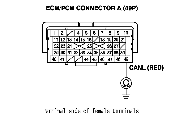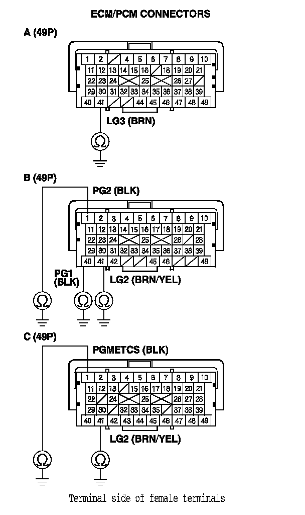 33. Check for continuity between ECM/PCM connector terminal A49 and body ground.