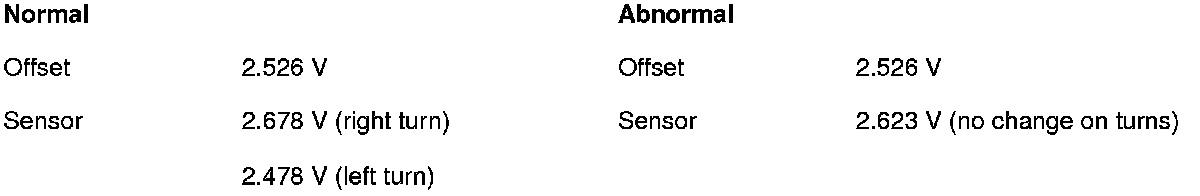- A sensor output voltage LOWER than the Offset voltage indicates that the vehicle is turning to the right.