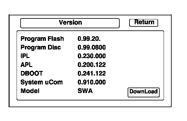 The Program Flash version should always be greater than or equal to the Program Disc version. IPL, APL, DBOOT, and System uCom are for factory use only.