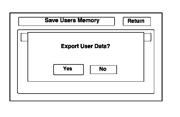 Select this button to move the customer's data from the original navi ECU to the PC card. Select YES on the Export User Data Confirmation screen. The process takes only a couple of seconds. The system stores two small files on the card.