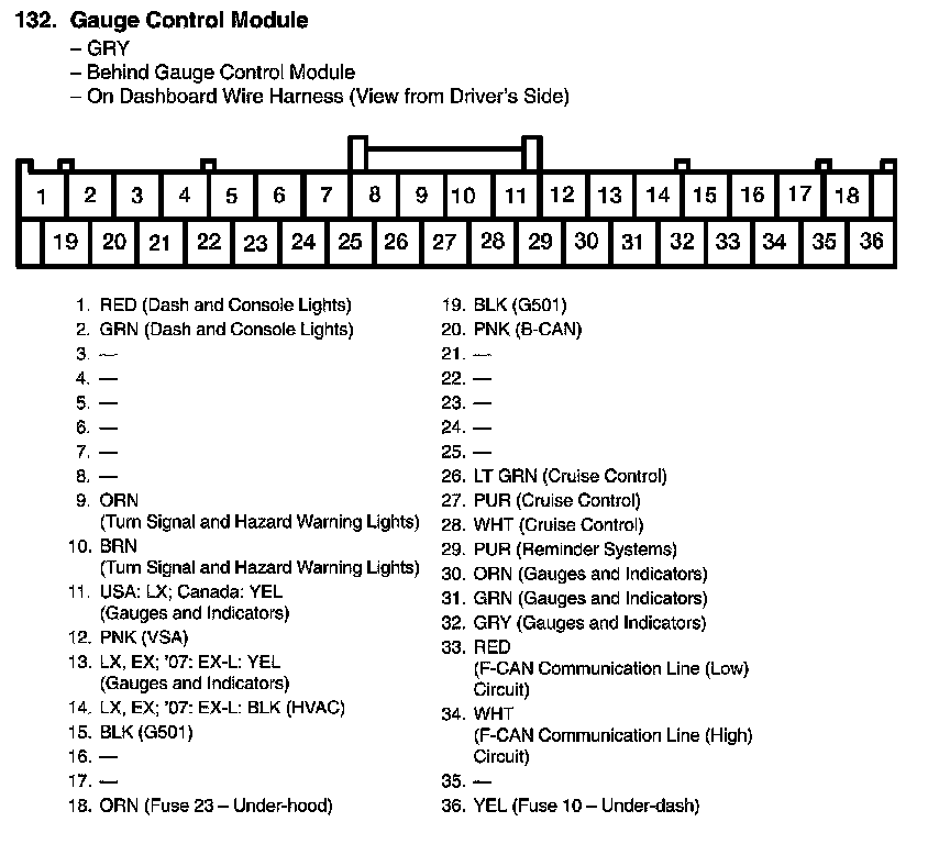 View 132 Gauge Control Module Connector View