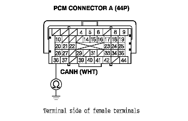 32. Check for continuity between PCM connector terminal A36 and body ground.