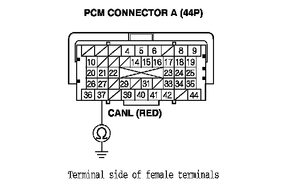 34. Check for continuity between PCM connector terminal A37 and body ground.