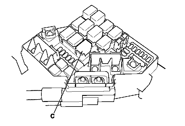 67. Remove PGM-FI main relay 1 (C) from the under-hood fuse/relay box.