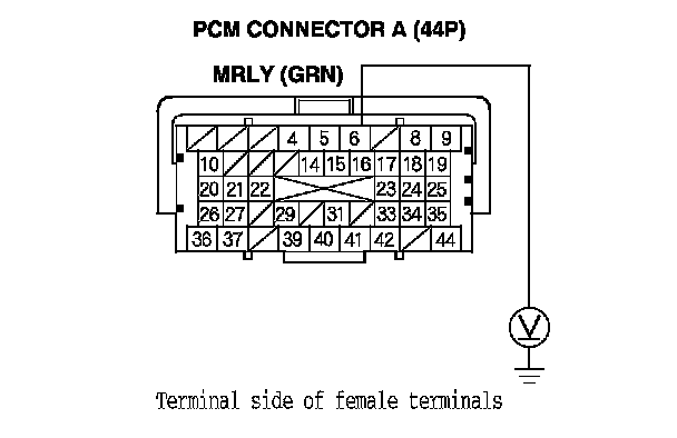61. Measure the voltage between PCM connector terminal A6 and body ground.