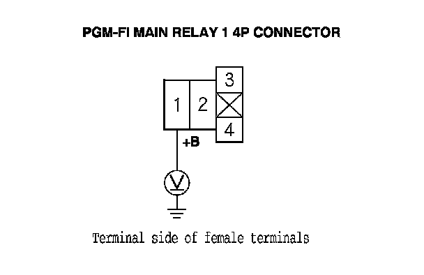 68. Measure the voltage between PGM-FI main relay 1 4P connector terminal No. 1 and body ground.