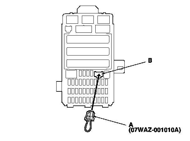 4. Connect the MPCS service connector (A) to the MCIC socket (B) in the under-dash fuse/relay box.