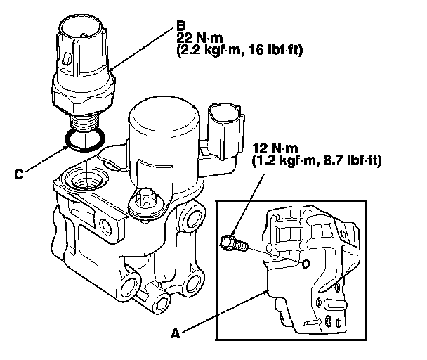 4. Install the parts in the reverse order of removal with a new O-ring (C).