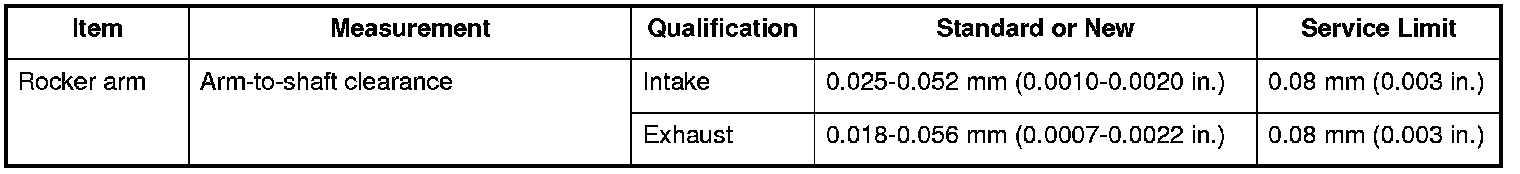 Rocker Arm Specifications