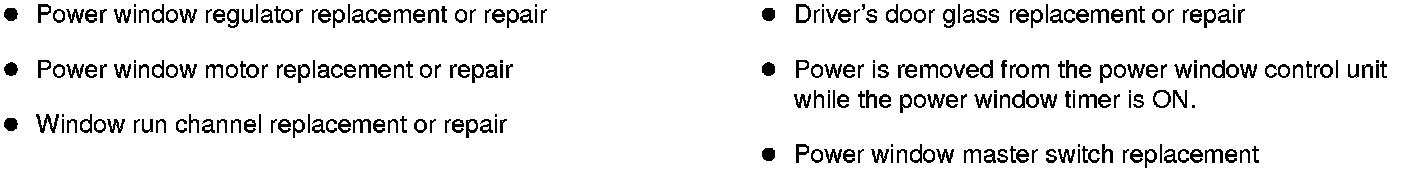 Reset the driver's power window after doing any of the following actions: