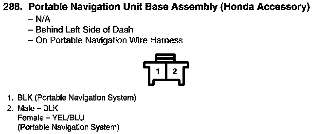 Home >> Honda >> 2009 >> CR-V 4WD L4-2.4L >> Repair and Diagnosis >> Accessories and Optional Equipment >> Navigation System >> Navigation Module >> Diagrams >> Portable Navigation Unit Base Assembly Connector View (Honda Accessory)