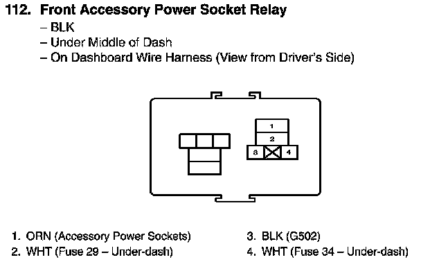 View 112 Front Accessory Power Socket Relay Connector View