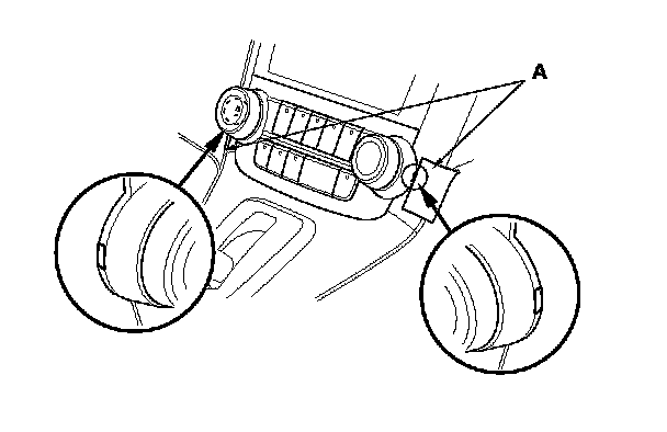 2. Place protective tape (A) on both sides of the dashboard next to the HVAC control unit.