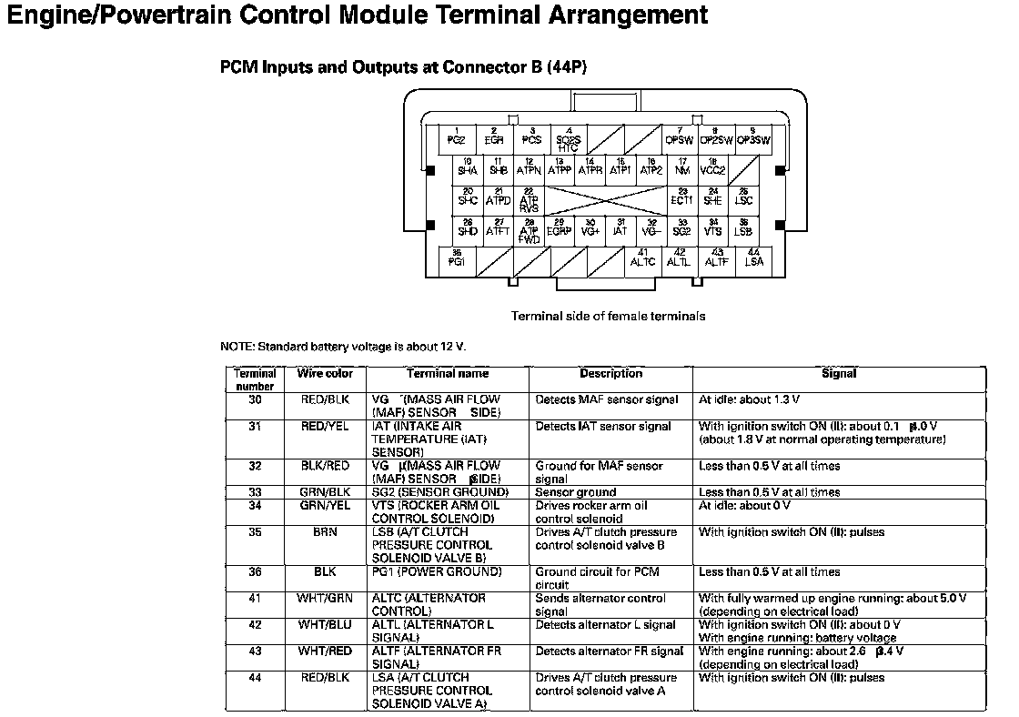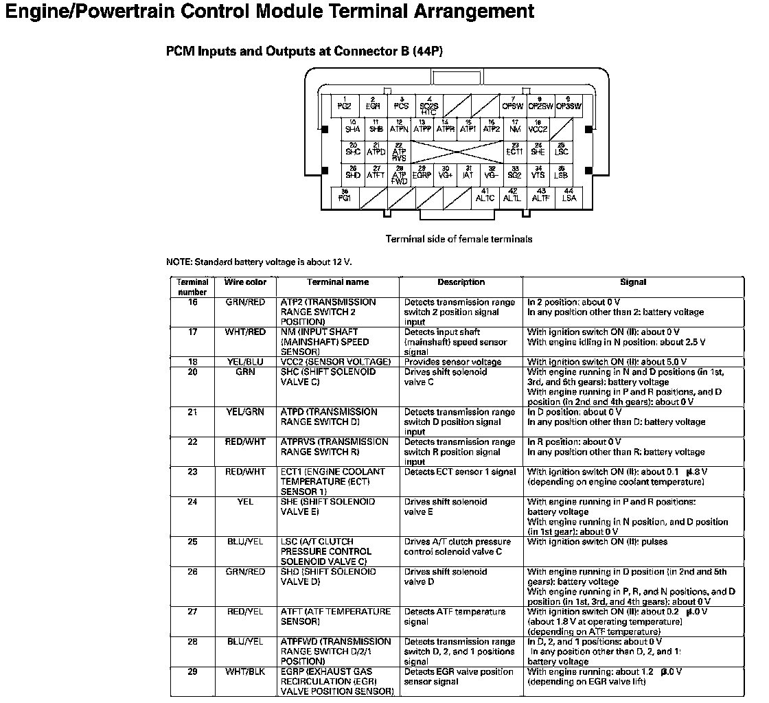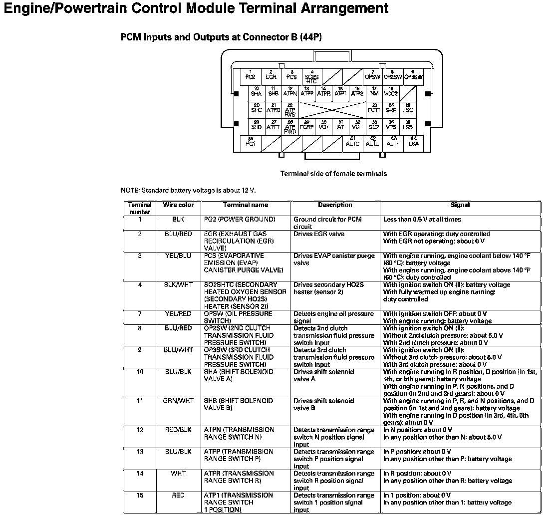PCM Inputs And Outputs At Connector B