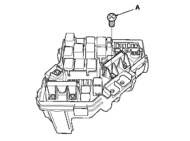 2. Remove the under-hood fuse/relay box. Under-Hood Fuse/Relay Box Removal and Installation
