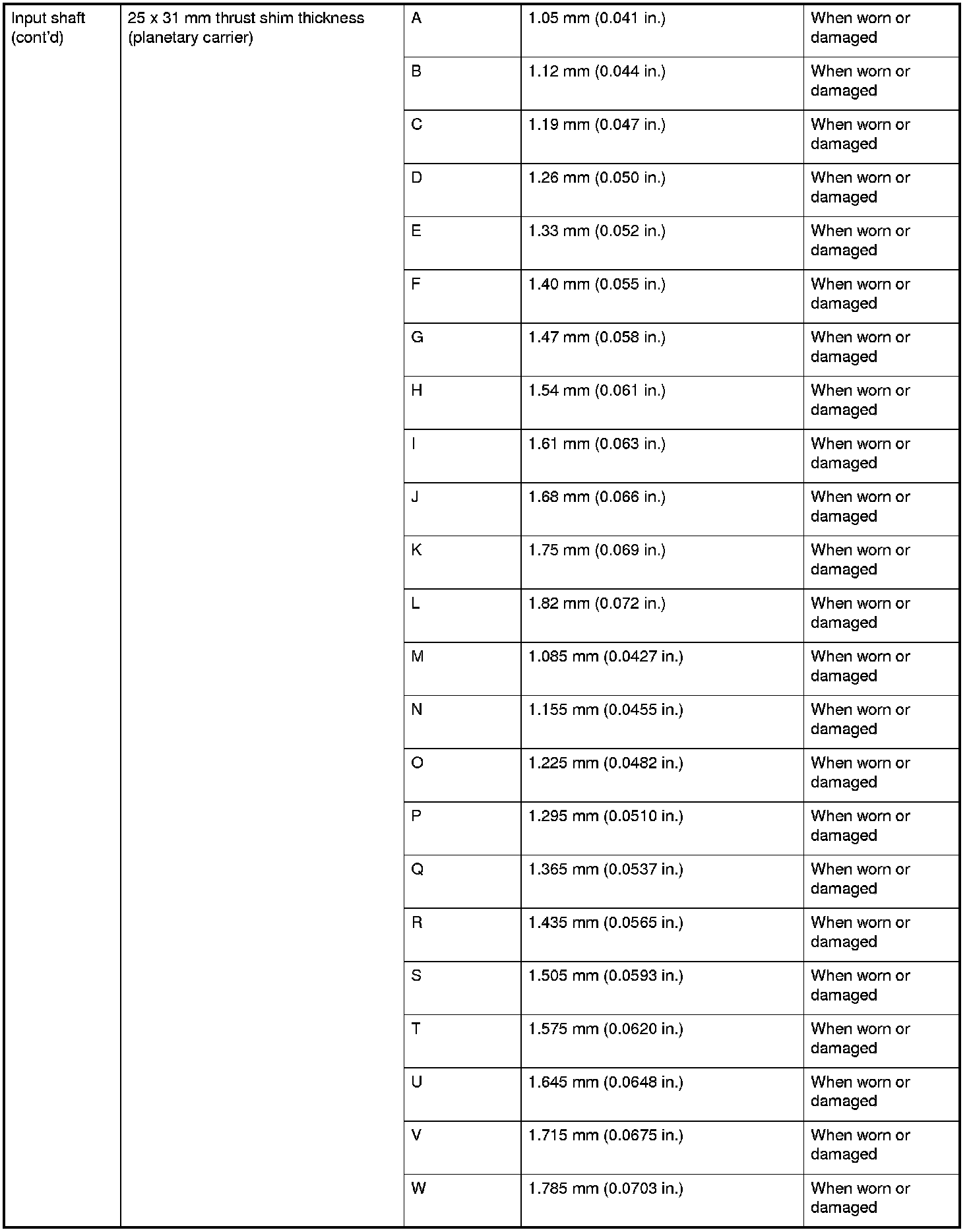 Input Shaft (Cont'd) Specifications