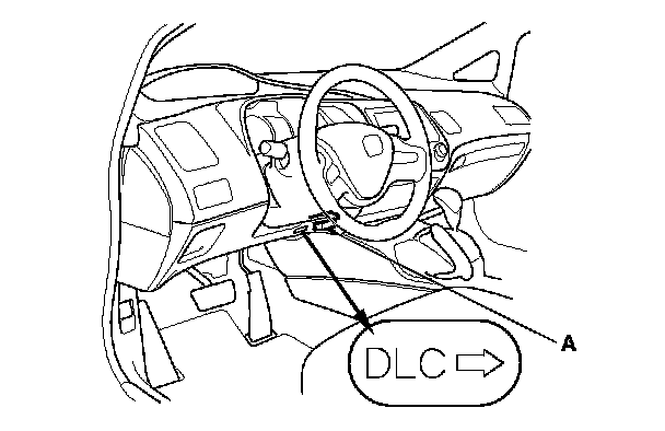 2. Connect the HDS to the data link connector (DLC) (A) located under the driver's side of the dashboard.