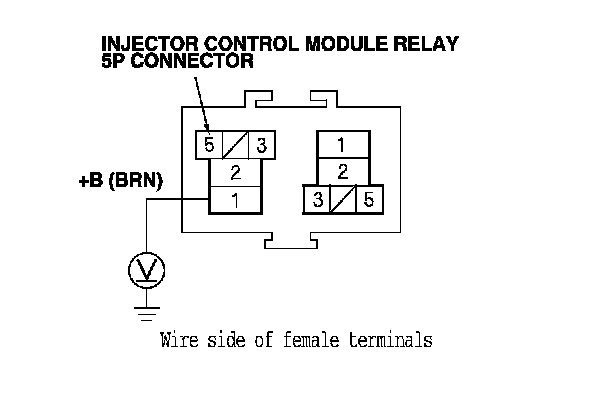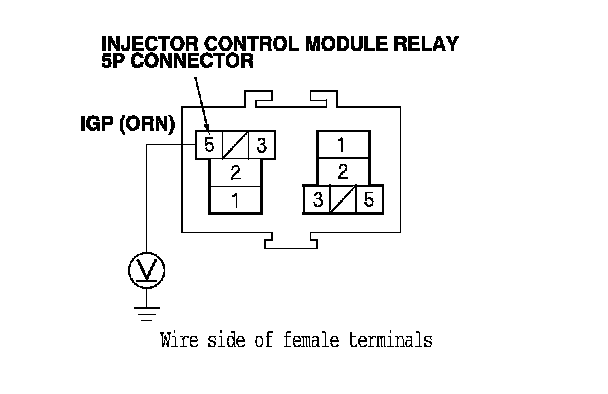 10. Measure the voltage between injector control module relay 5P connector terminal No. 5 and body ground.