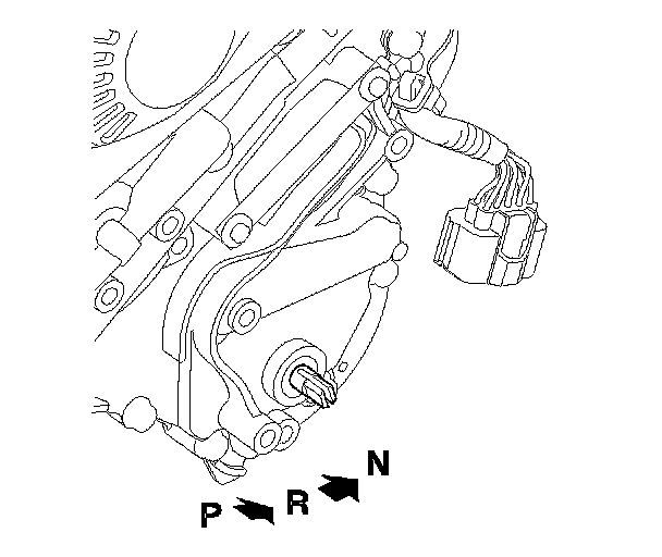 5. Make sure the selector control shaft is in the N position. If necessary, move the shift lever to the N position from the P position.