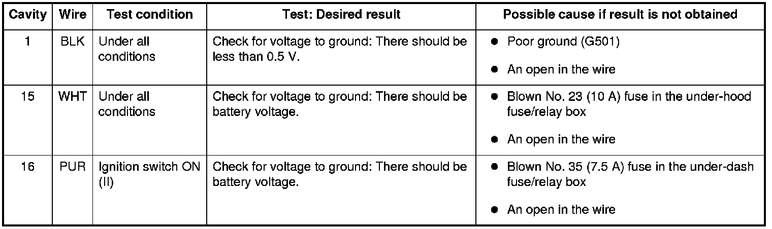 5. Reconnect the connector and make these input tests at the connector.