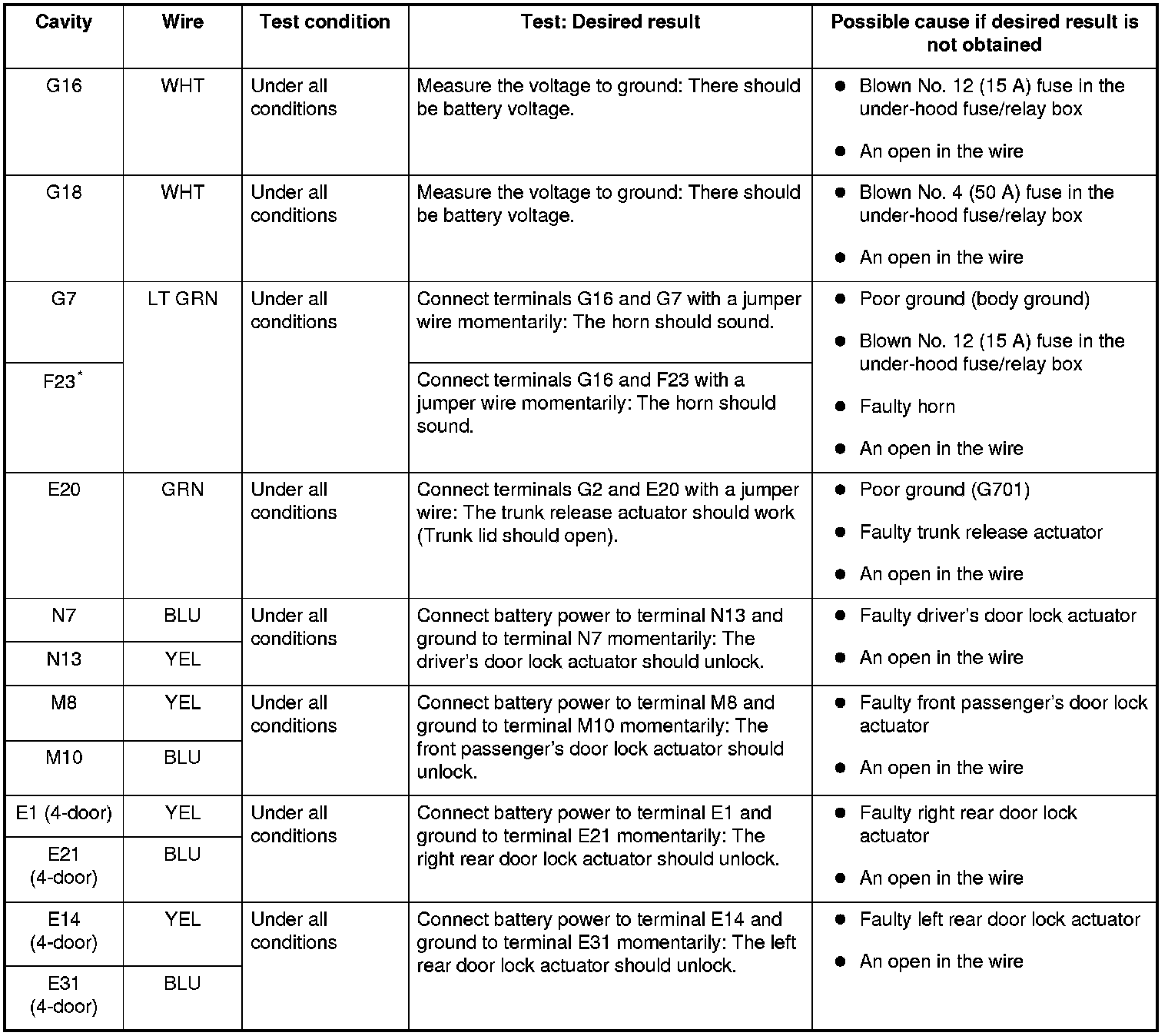 1. Before troubleshooting the keyless/poor door locks/security system, troubleshoot the system using B-CAN System Diagnosis Test Mode A. Troubleshooting - B-CAN System Diagnosis Test Mode A