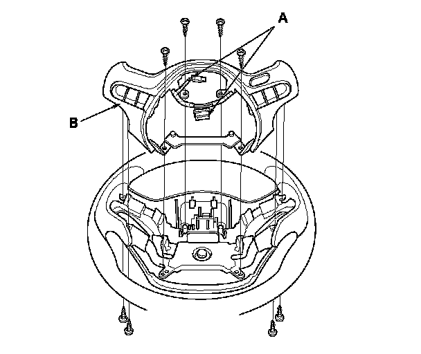 2. Disconnect the connectors (A), then remove the steering wheel trim (B).