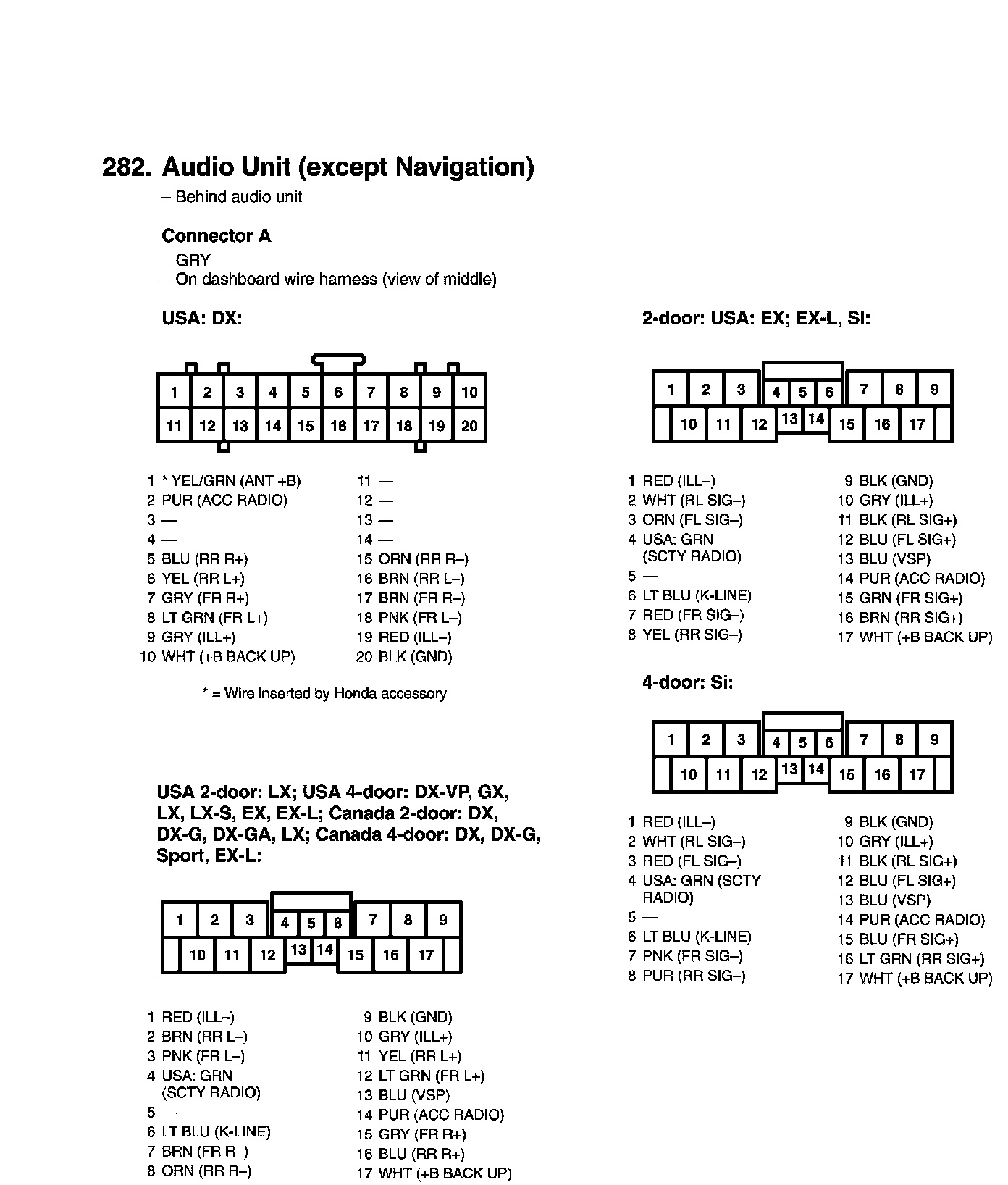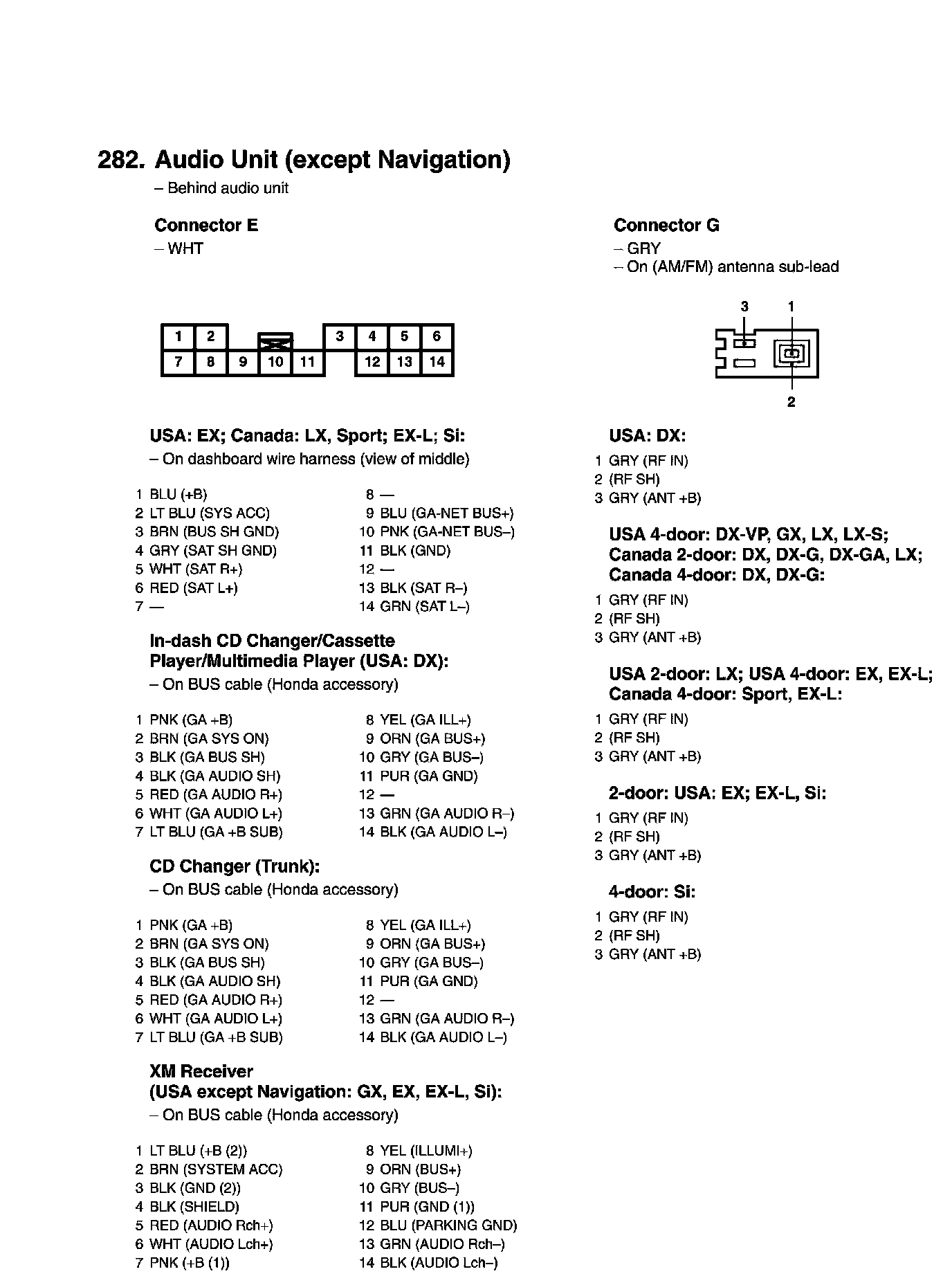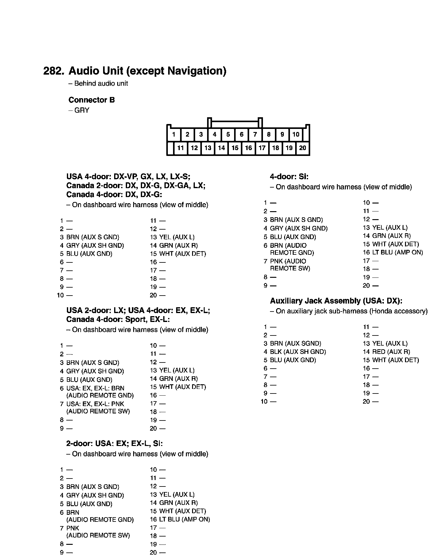 View 282 Audio Unit Connector View (Except Navigation)
