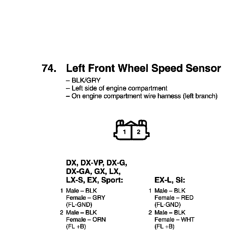 View 74 Left Front Wheel Speed Sensor Connector View