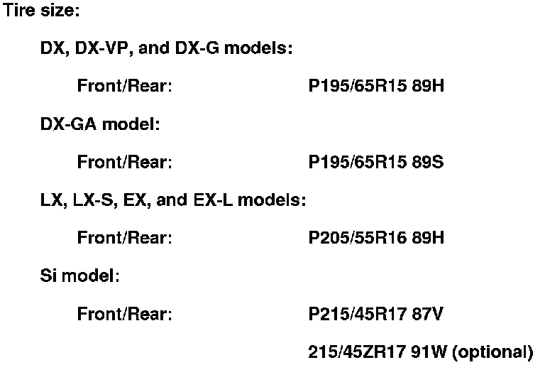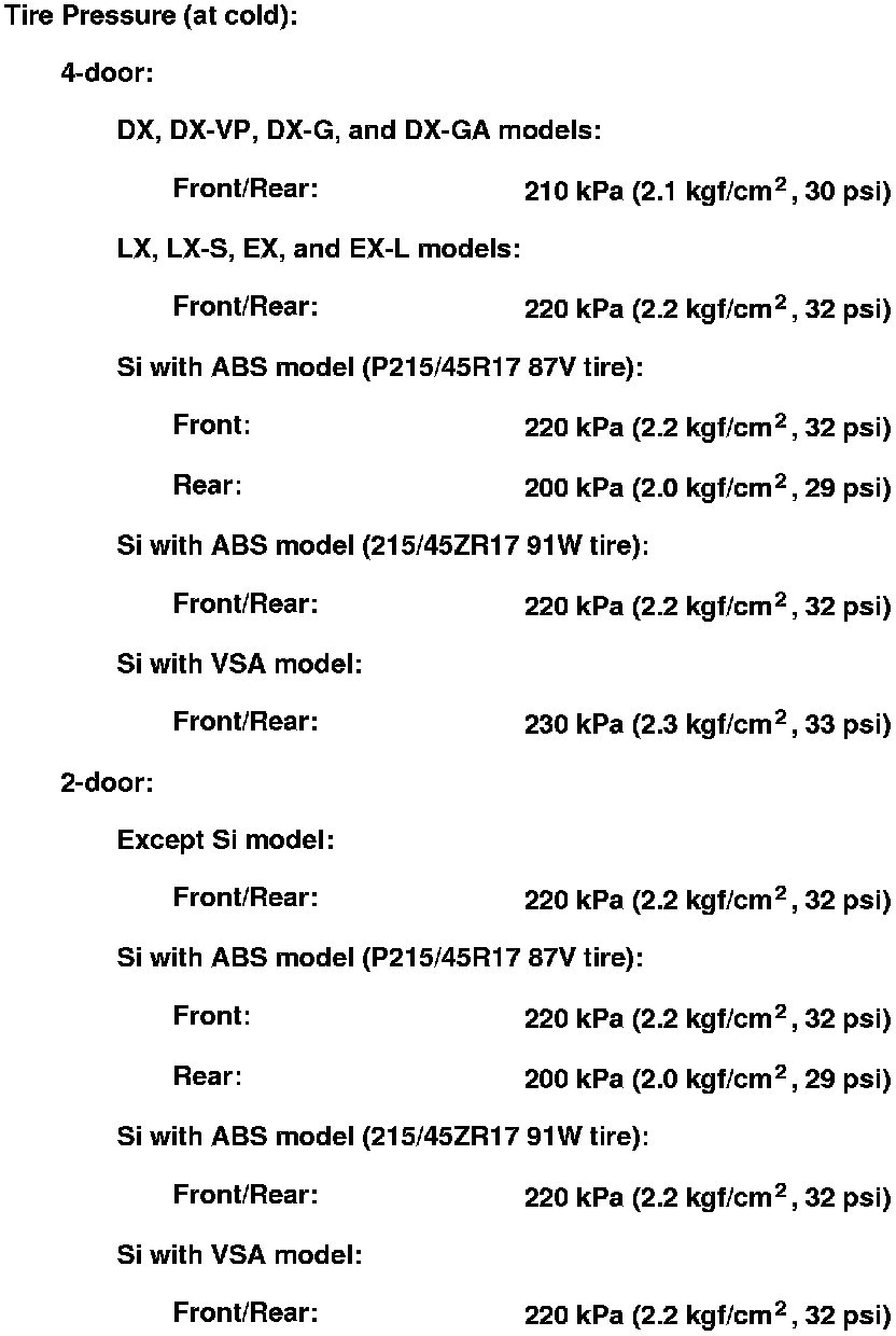 4. Check the tire size and tire pressure.