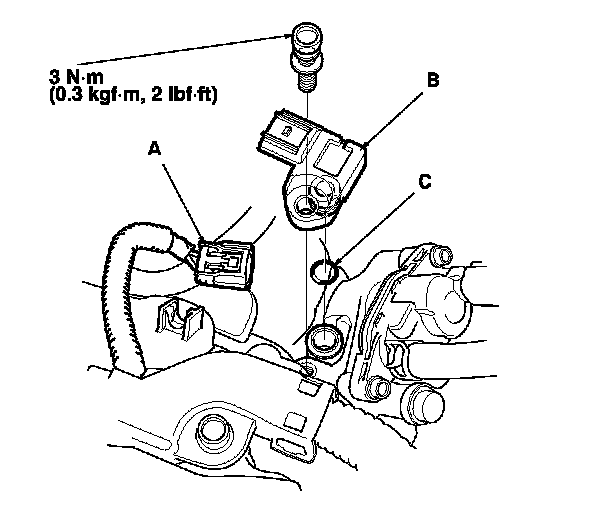 4. Install the parts in the reverse order of removal with a new O-ring (C).