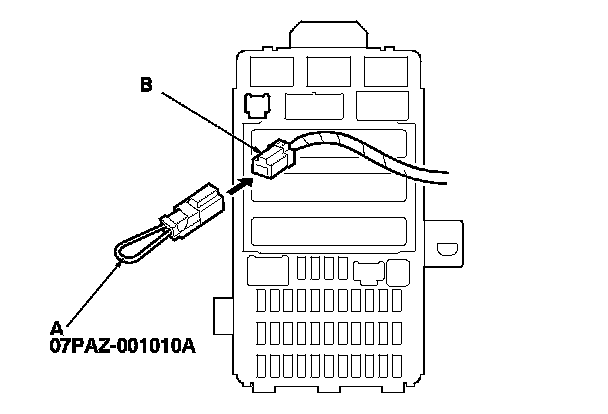 7. Connect the SCS service connector (A) to the yellow MES 2P connector (B). Do not use a jumper wire.
