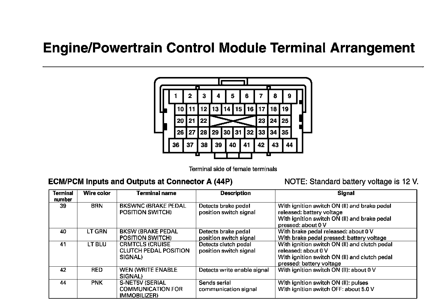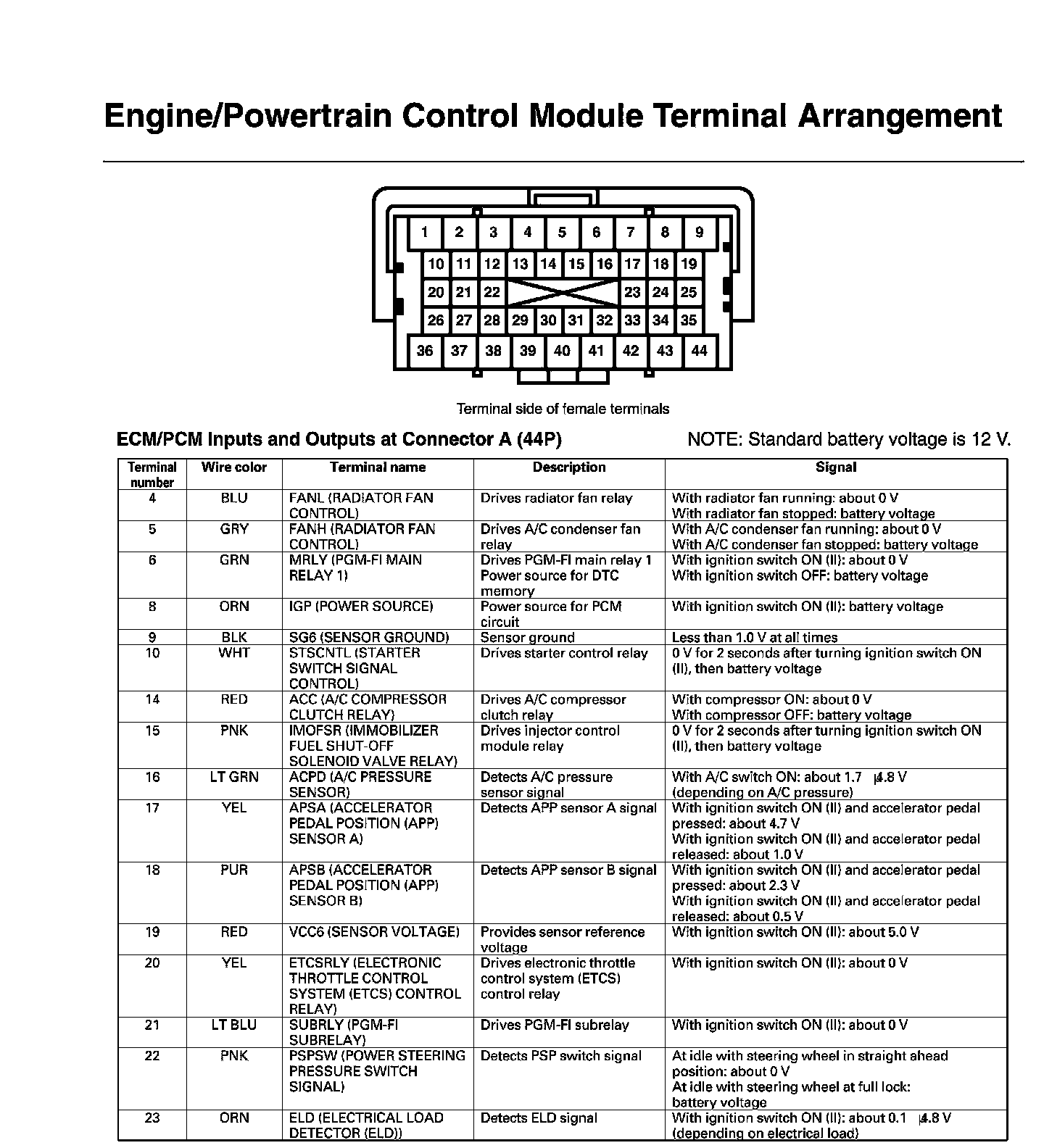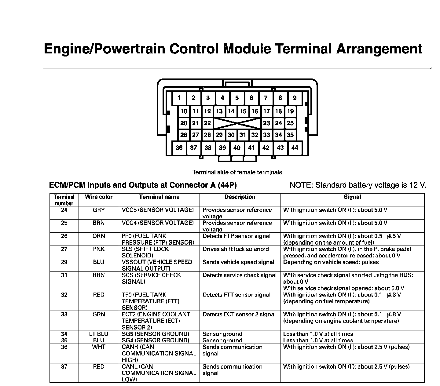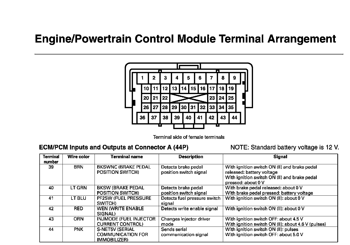 ECM/PCM Inputs And Outputs At Connector A