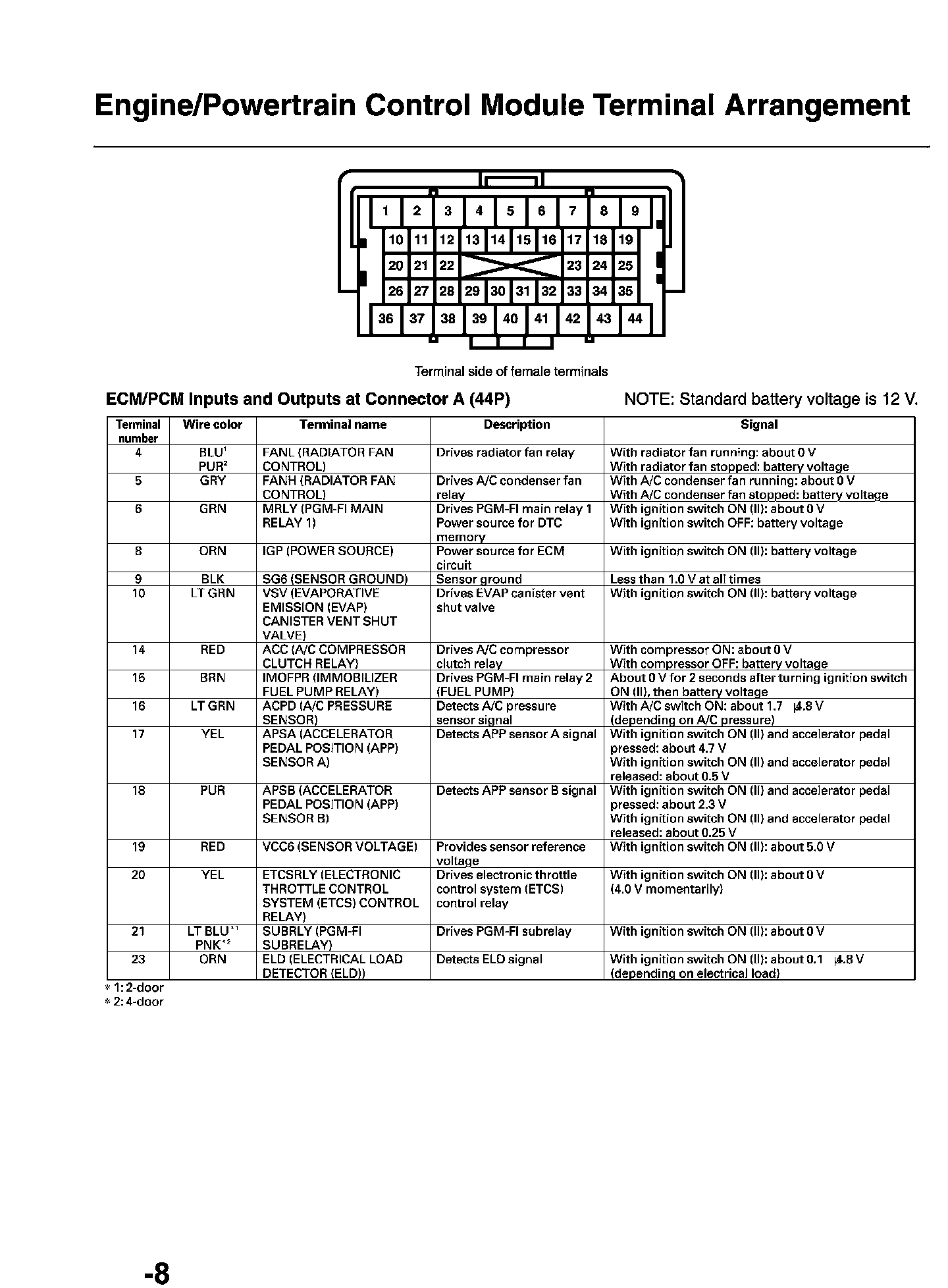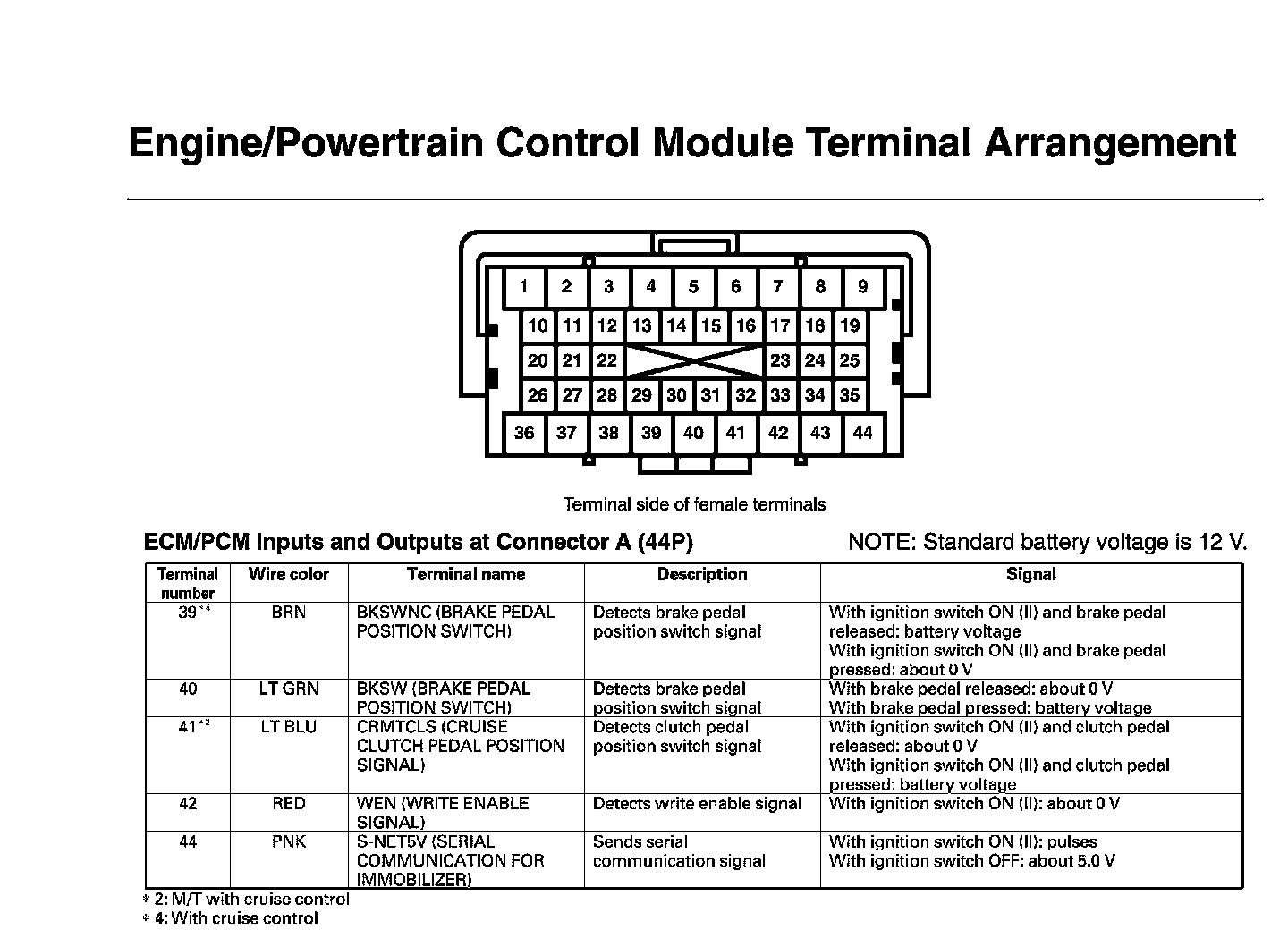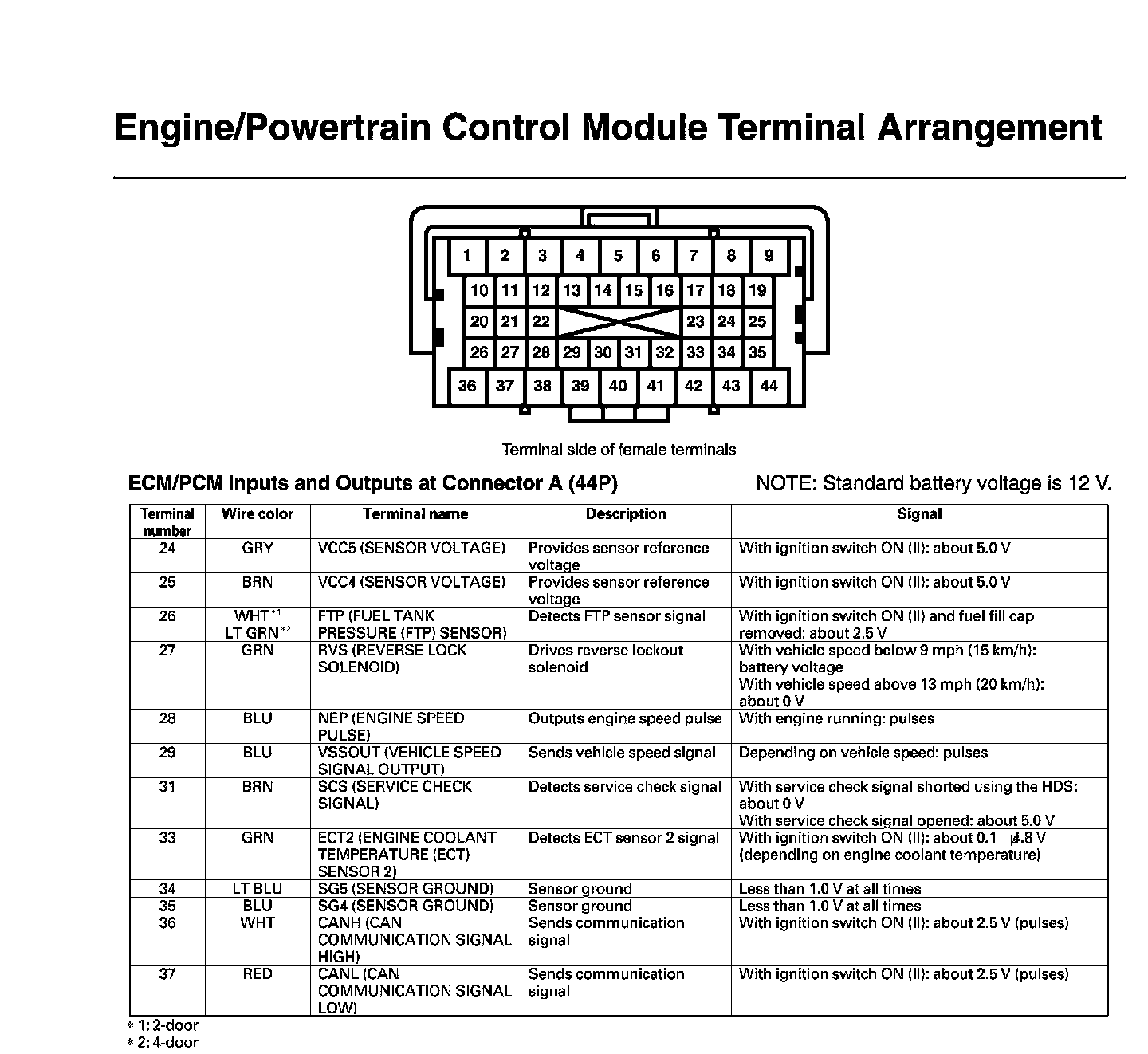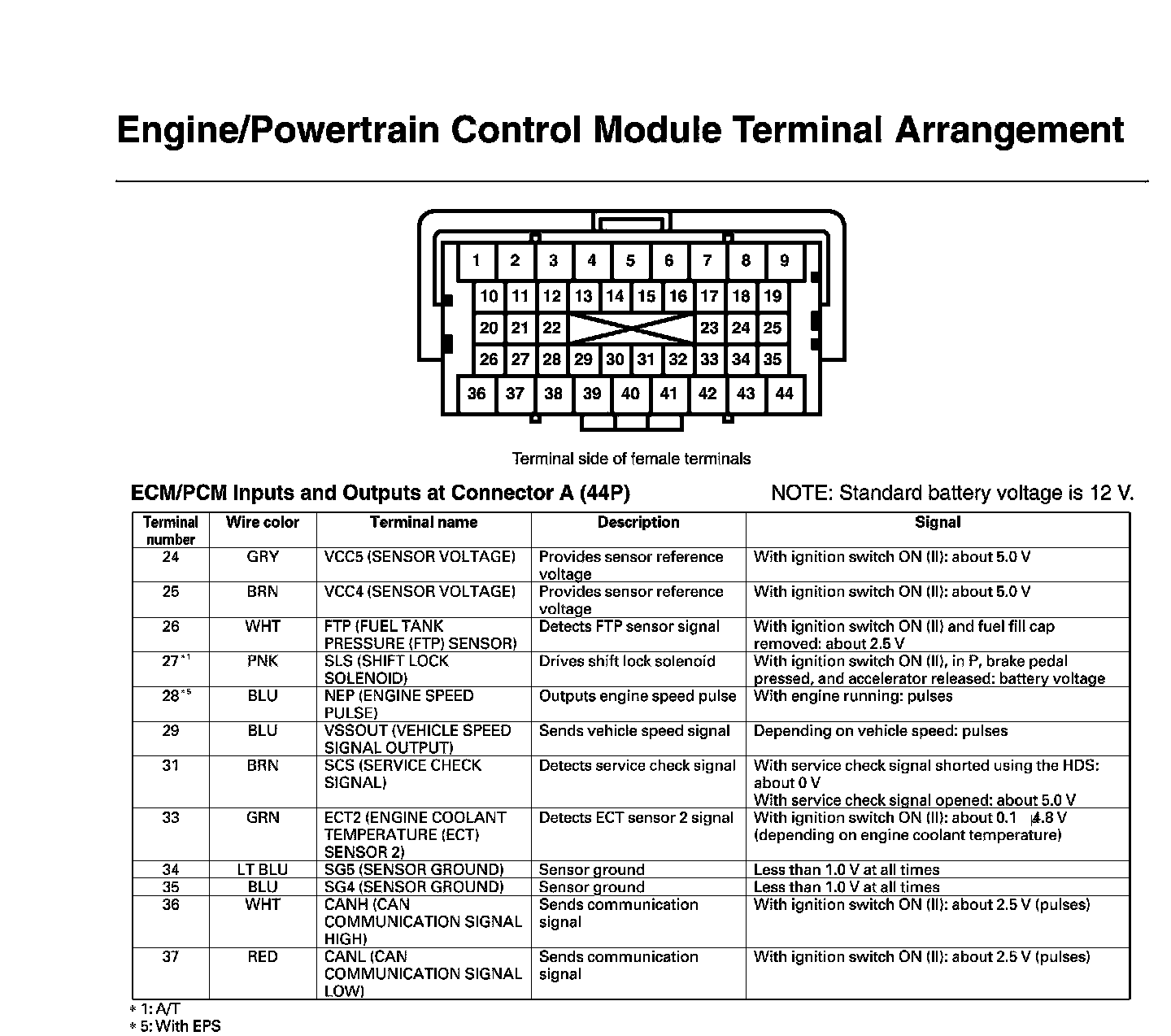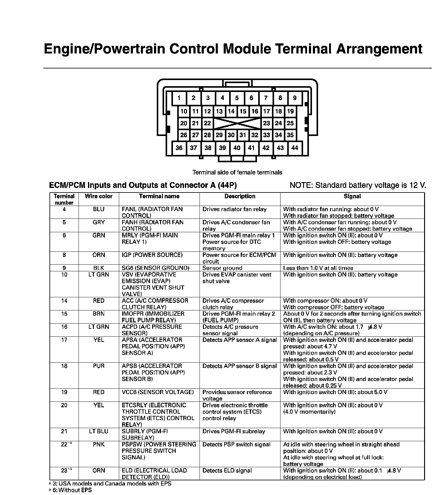 ECM/PCM Inputs And Outputs At Connector A