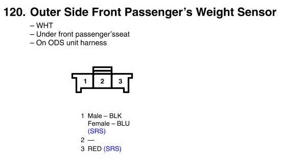 View 120 - Outer Side Front Passenger's Weight Sensor Connector View