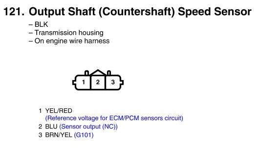 View 121 - Output Shaft (Countershaft) Speed Sensor Connector View