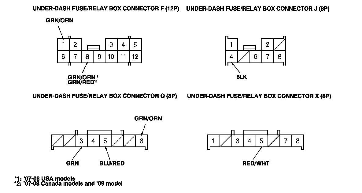 8. Disconnect under-dash fuse/relay box connectors F, J, Q and X.