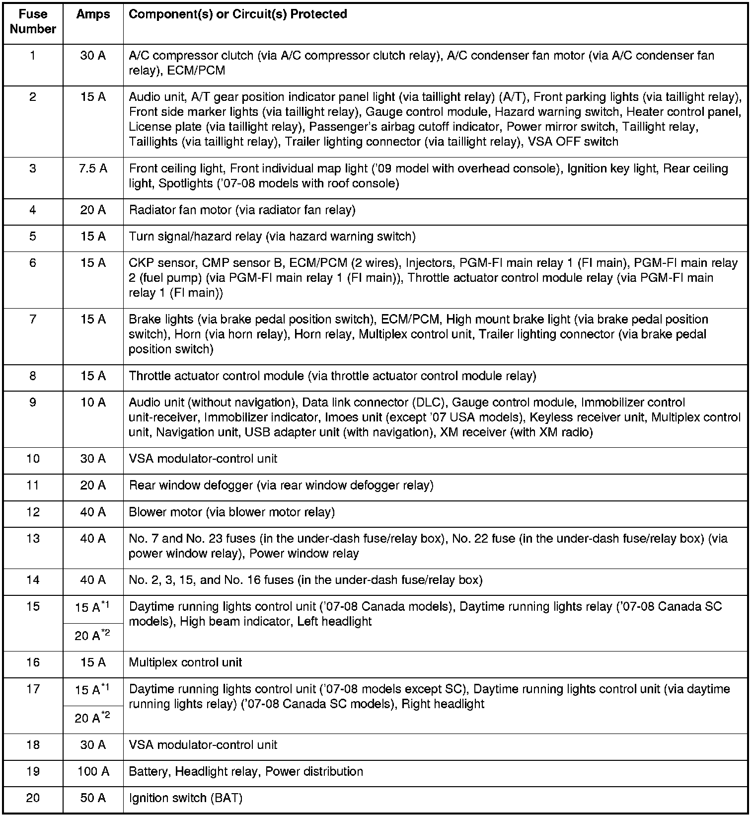 *1: '07-08 Canada models, and '09 model