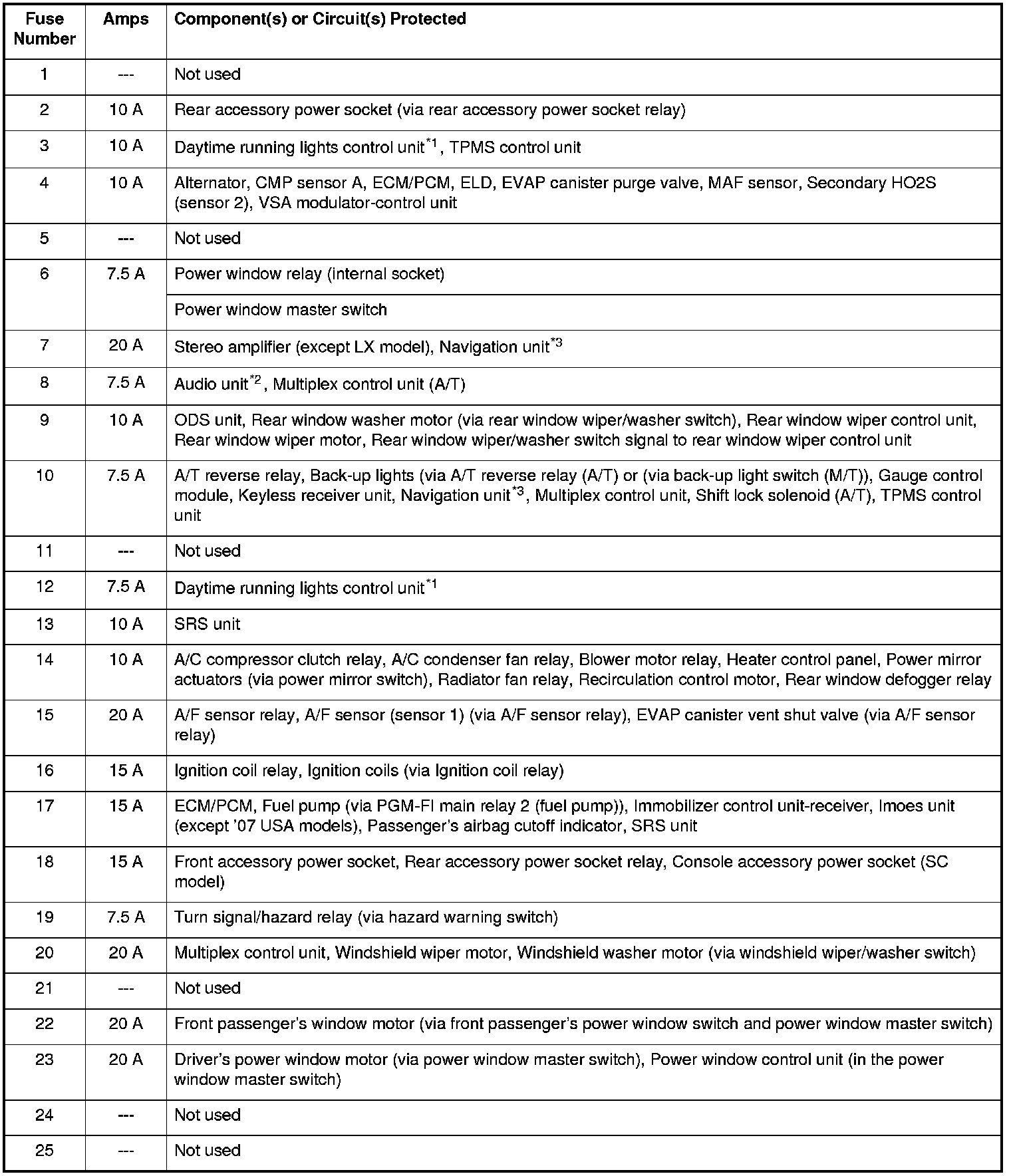 Home >> Honda >> 2009 >> Element 2WD L4-2.4L >> Repair and Diagnosis >> Power and Ground Distribution >> Fuse >> Application and ID >> Fuse to Components Index
