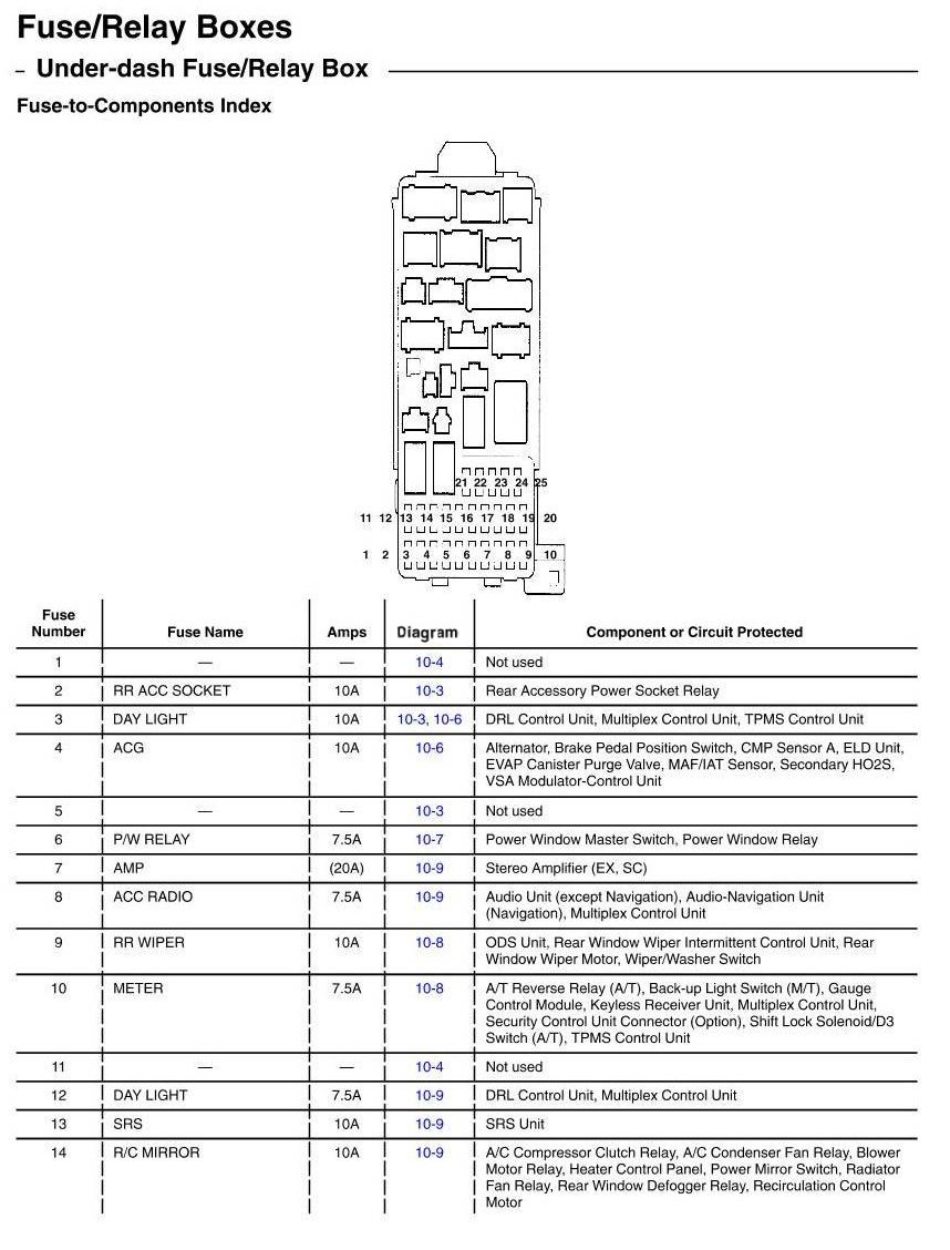Under-dash Fuse/Relay Box - Fuse-to-Components Index