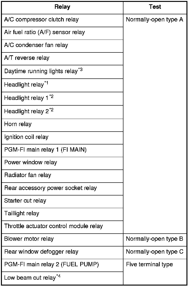Use this chart to identify the type of relay, then do the test listed for it. Carefully remove the relays using the relay puller. Do not use pliers. Pliers will damage the relay.
