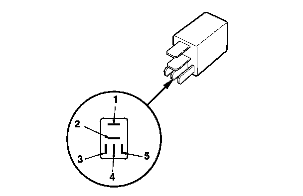- There should be continuity between terminals No. 1 and No. 2 when the battery positive terminal is connected to terminal No. 5, and battery negative terminal is connected to terminal No. 3.